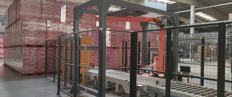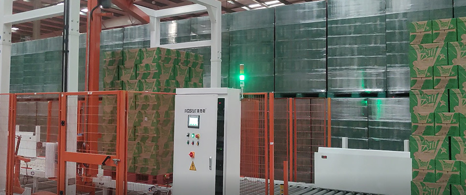 比利時飲料廠后道包裝現(xiàn)場美奇斯懸臂式覆頂纏膜機入駐比利時飲料廠,提供后道包裝系統(tǒng)服務(wù)。全自動化設(shè)備,...